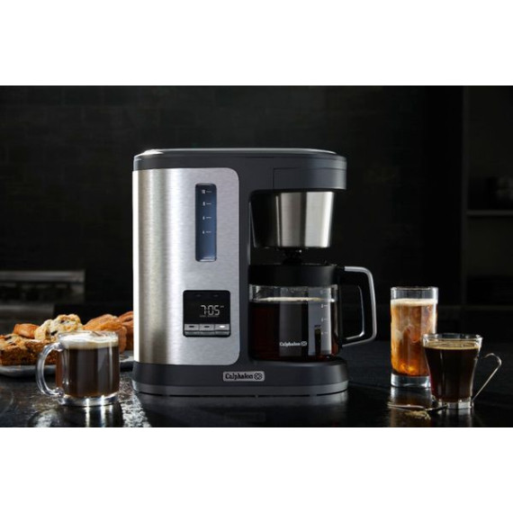 Provide delicious beverages for everyone with this Calphalon Special Brew 10-cup coffee maker in dark stainless steel. The premium boiling system extracts up to 20 percent more flavor. The nonstick warming plate keeps the 10-cup glass carafe warm for up to four hours, and the Delay Brew feature lets you select a brewing time in advance. The strength flavor adjustment feature in this Calphalon Special Brew 10-cup coffee maker ensures the coffee is to your preferred taste.
