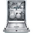 Add this Bosch Series 100 built-in dishwasher to your contemporary kitchen. Operating at only 48dB, it quietly yet effectively cleans your dishes and utensils. The three-level adjustable-height shelves accommodate different sizes of pots and glassware, and the third rack provides 30 percent more stacking space in this Bosch Series 100 built-in dishwasher.