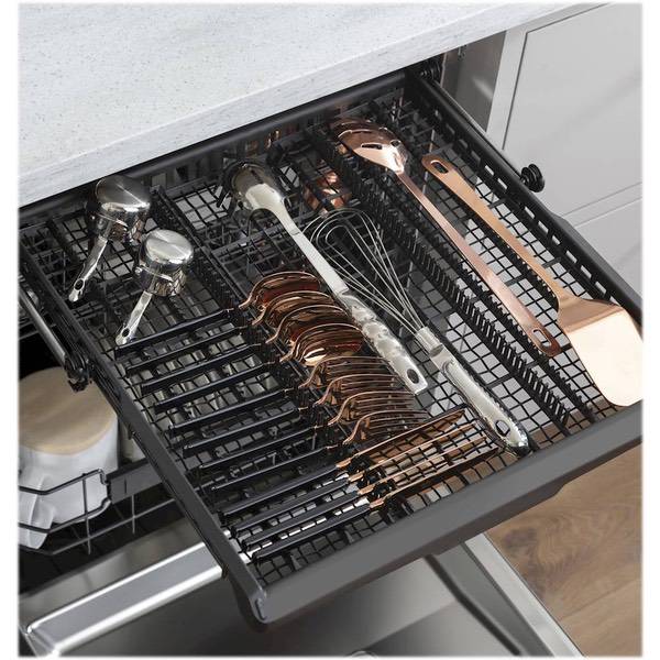 Remove grease, grime and other messes to make dishes look pristine with this Cafe 24-inch built-in dishwasher. The tub is made with stainless steel for protection against rust, dings and other damage while offering a sleek appearance. This Cafe 24-inch built-in dishwasher features 16 place settings for accommodating large loads.