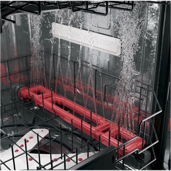 Take the work out of after-dinner cleanup with this GE Profile dishwasher. The reversing quad-blade wash arm cleans dishes thoroughly, while bottle wash jets effectively wash hard-to-reach areas inside tall items. This GE Profile dishwasher lets you adjust the easy-touch upper rack to accommodate larger dishes and taller glassware without a problem.