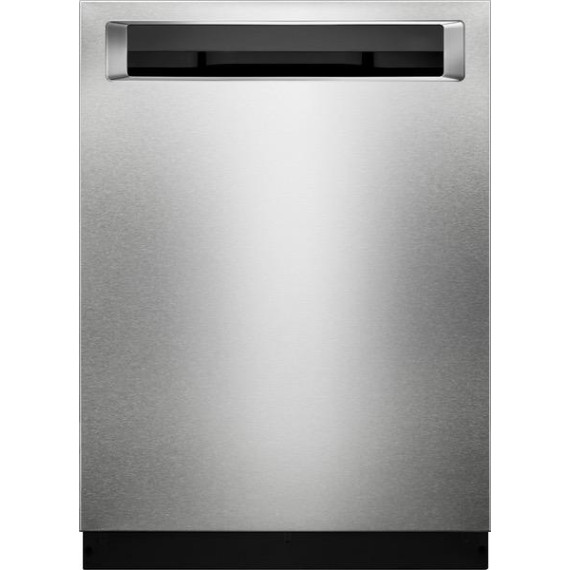 Enjoy the modern styling of the oversize pocket handle on this KitchenAid dishwasher. A third-level rack accommodates items that are typically hard to place, and the PrintShield finish protects against fingerprints and smudges. This KitchenAid dishwasher uses a fan-enabled ProDry system to quickly wick away moisture.