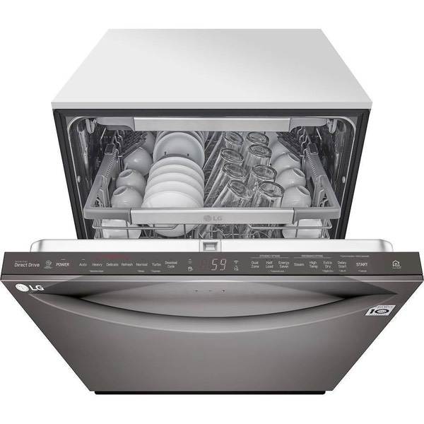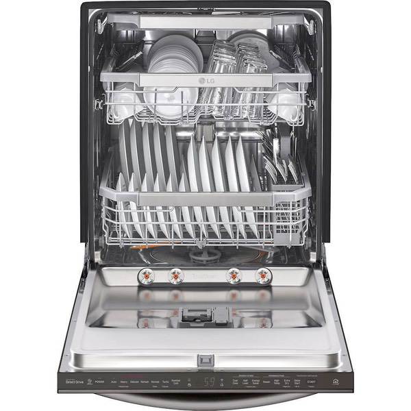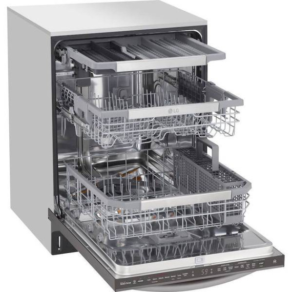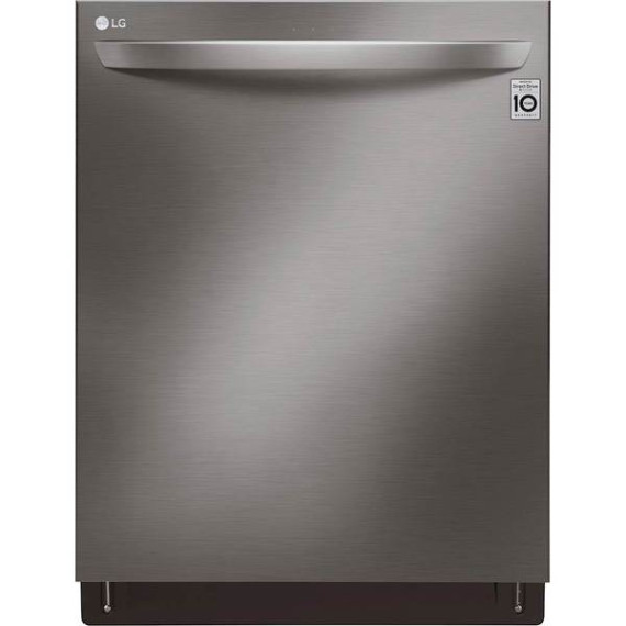 LG - 24" Top Control Smart Wi-Fi Dishwasher - QuadWash - TrueSteam - Steel Tub with Light - PrintProof Black Stainless Steel