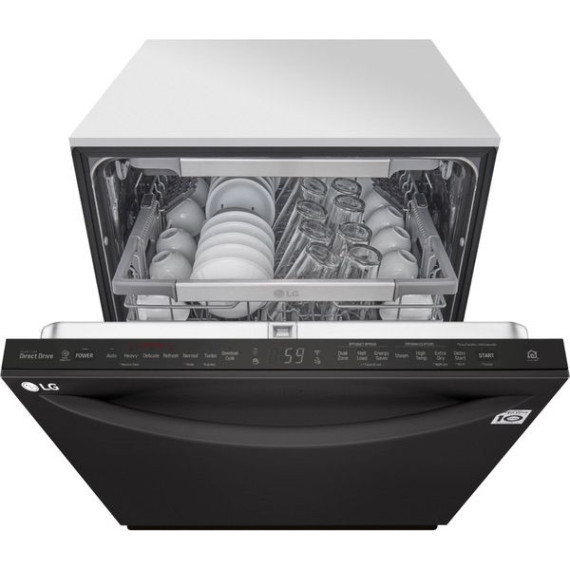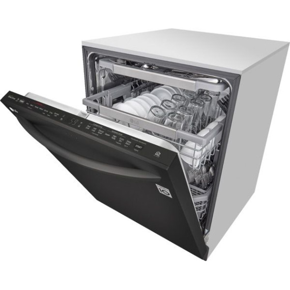 LG - 24" Top Control Smart Wi-Fi Dishwasher - QuadWash - TrueSteam - Steel Tub with Light - PrintProof Matte Black Stainless Steel