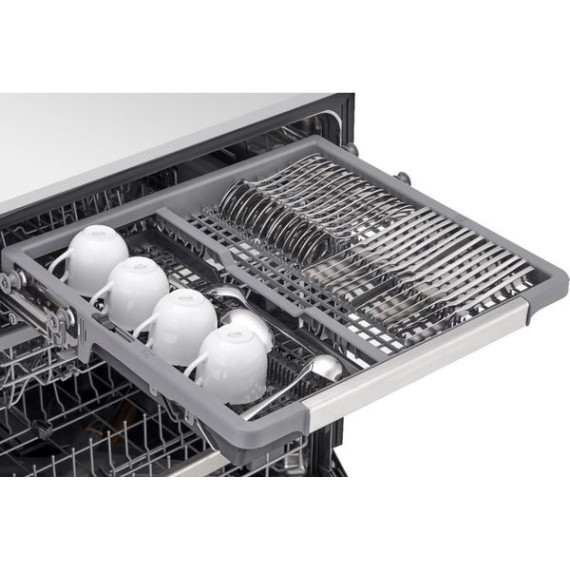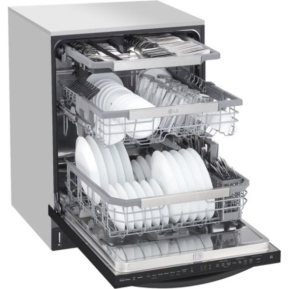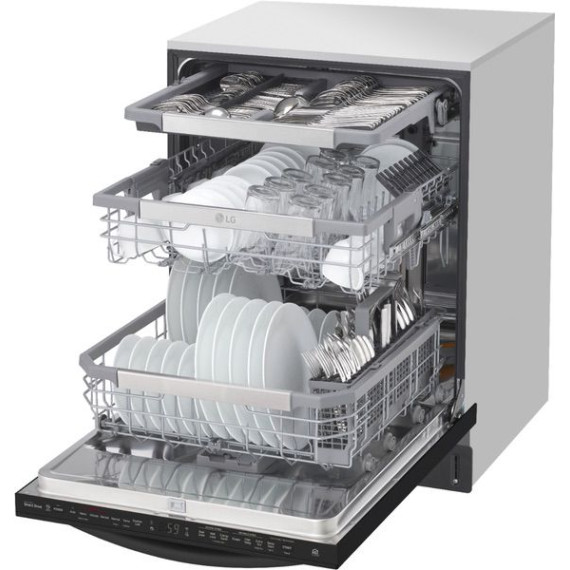 Post-dinner party cleanup? Let your LG dishwasher do the heavy lifting. LG QuadWash™ provides maximum cleaning coverage making it easier than ever to get your dishes clean and with TrueSteam® technology you get up to 60% less water spots. The Glide Rail keeps the upper rack on track while the Ball-bearing wheel provides a smooth lower rack glide for easier loading and unloading. Need more room? No problem. The EasyRack™ Plus system and height-adjustable 3rd rack provide the flexibility you need to fit more dishes.