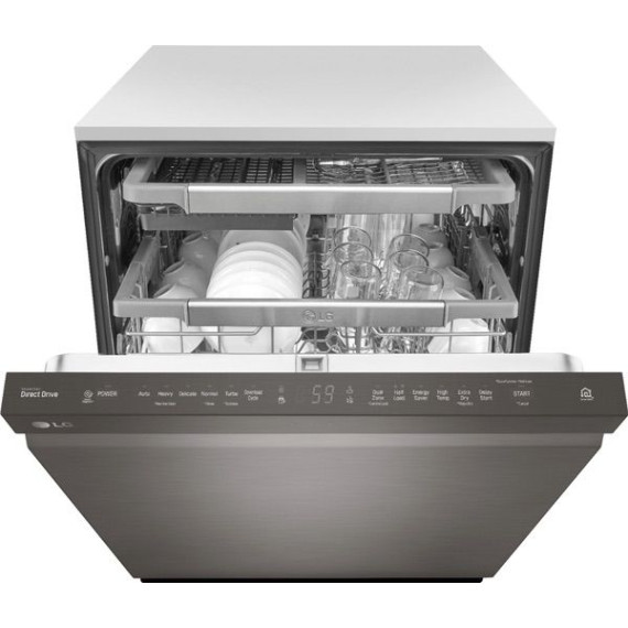 LG - 24" Top Control Smart Wi-Fi Enabled Dishwasher with QuadWash and Stainless Steel Tub - PrintProof Black Stainless Steel