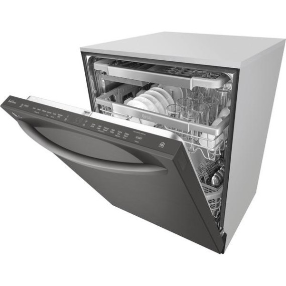 LG - 24" Top Control Smart Wi-Fi Enabled Dishwasher with QuadWash and Steel Tub with Light - PrintProof Black Stainless Steel