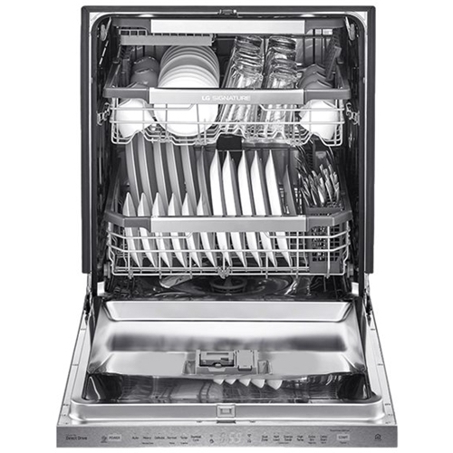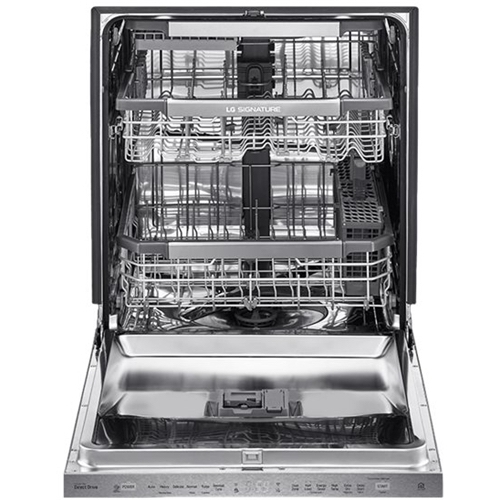 LG - SIGNATURE 24" Top Control Smart Wi-Fi Enabled Dishwasher with QuadWash and Steel Tub with Light - Textured steel