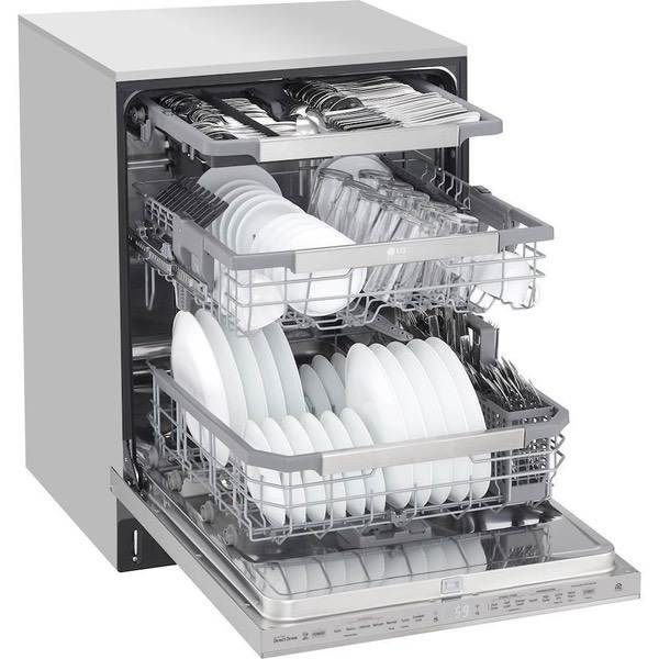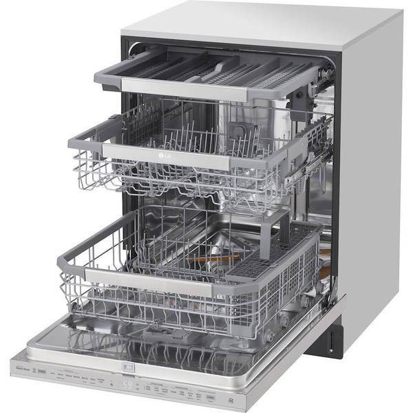 Don’t waste time pre-washing your dishes for the dishwasher. Let your LG dishwasher do the heavy lifting. LG QuadWash™ provides maximum cleaning coverage making it easier than ever to get your dishes clean and with TrueSteam® technology you get up to 60% less water spots. The Glide Rail keeps the upper rack on track while the Ball-bearing wheel provides a smooth lower rack glide for easier loading and unloading. Need more room? No problem. The EasyRack™ Plus system and height-adjustable 3rd rack provide the flexibility you need to fit more dishes.