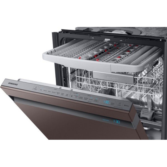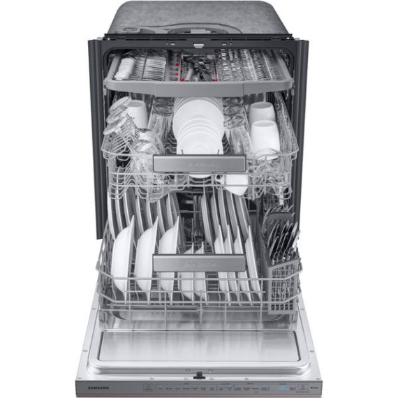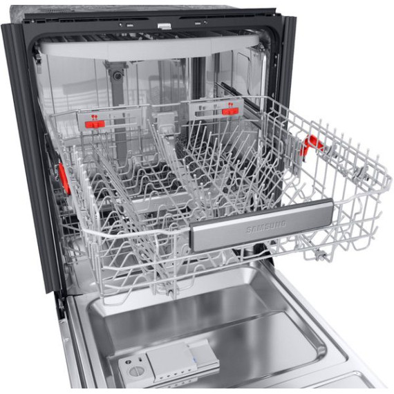 The whisper-quiet 39dBA Samsung dishwasher with linear wash technology has a one-of-its-kind sliding spray bar that moves in linear motion to provide corner-to-corner coverage for complete cleaning. Whisper-quiet wash cycles allow you to run the dishwasher any time of the day. The AutoRelease™ door opens automatically to circulate air and help improve drying performance.