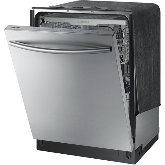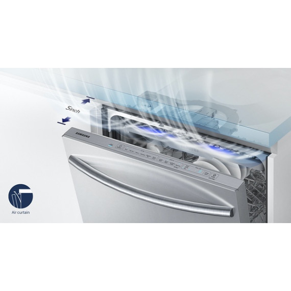 Samsung STORMWASH™ Dishwasher Heavy-duty wash system makes pre-rinsing unnecessary. Powerful rotating spray jets are positioned to clean dishes at every angle.Simply place hard-to-clean items above the StormWash™ wheel on the bottom rack and it scrubs them for you. The AutoRelease™ door opens automatically to circulate air and accelerate drying time. A third rack gives you dedicated space for cutlery and utensils freeing up more space for other dishes.