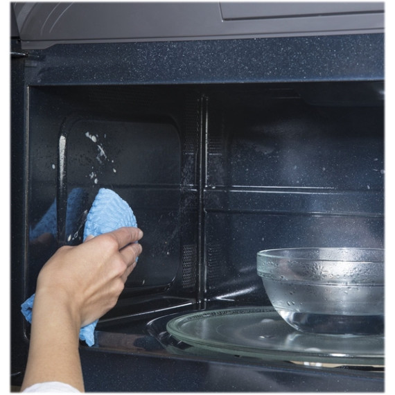 Cook dinner efficiently with this 1.9 cu. ft. GE over-the-range microwave oven. Weight and time defrost functions make preparing frozen foods effortless, and the indicator light tells you when the charcoal filter needs replacing. Use the melt feature of this GE over-the-range microwave oven to melt butter, chocolate and cheese smoothly and quickly.