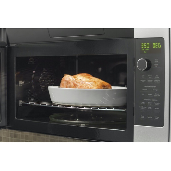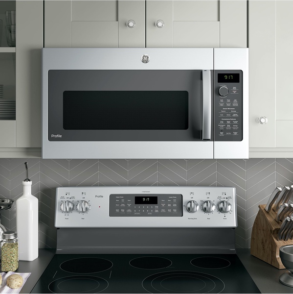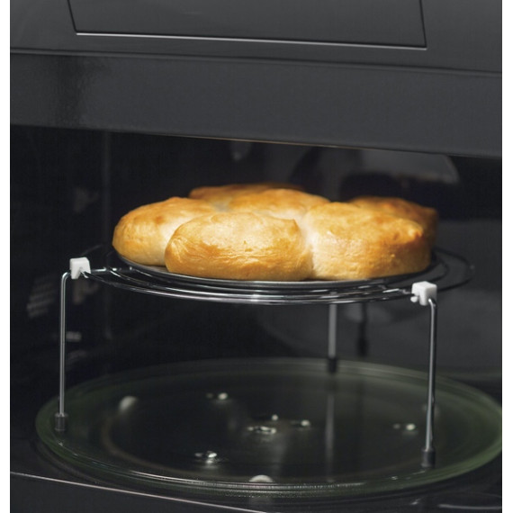 Achieve oven-quality cooking with this GE Profile Series microwave. It combines convection and microwave cooking to quickly deliver perfectly cooked food, and it's made for installation over the range to save counter space. This GE Profile Series microwave includes a rack that lets heat circulate evenly around food, providing golden-brown results.