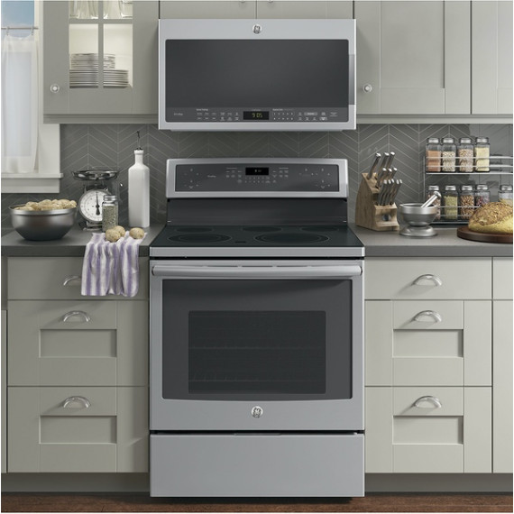 GE over-the-range microwave: Heat up snacks and leftovers quickly with this microwave, which features sensor cooking to automatically adjust heating times to suit your needs. Chef Connect lets you sync clocks and range burners with the microwave's surface light and vent (range not included).