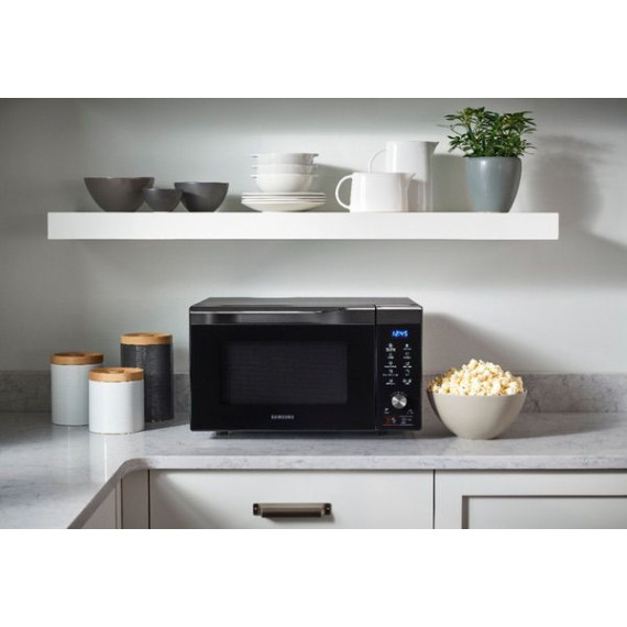 Pop a bag of popcorn or heat up the evening meal in this Samsung midsize microwave, which uses 900W for efficient heating. Power convection lets you recreate the taste of oven-cooked foods, and ten power settings offer versatility. This Samsung midsize microwave comes with a turntable, ensuring your snacks and meals are evenly heated.