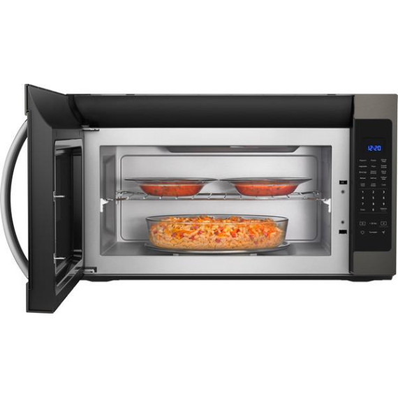 Enjoy simple steam cooking with this Whirlpool 2.1 cu. ft. over-the-range microwave oven. The 1000W of power provide quick, even cooking, and individual buttons let you heat pizza, popcorn, potatoes and veggies with a single touch. Use this Whirlpool 2.1 cu. ft. over-the-range microwave oven as a warming oven when you're cooking a large meal.