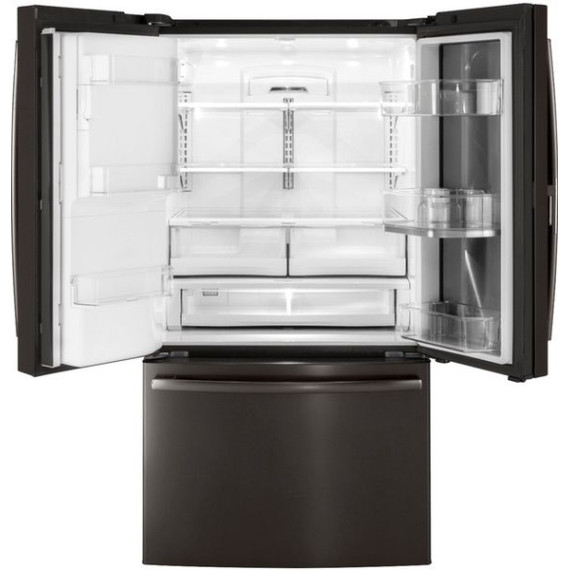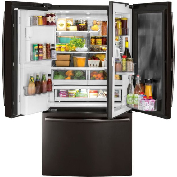 GE - 27.8 Cu. Ft. Door in Door French Door Refrigerator with Water and Ice Dispenser - Black stainless steel