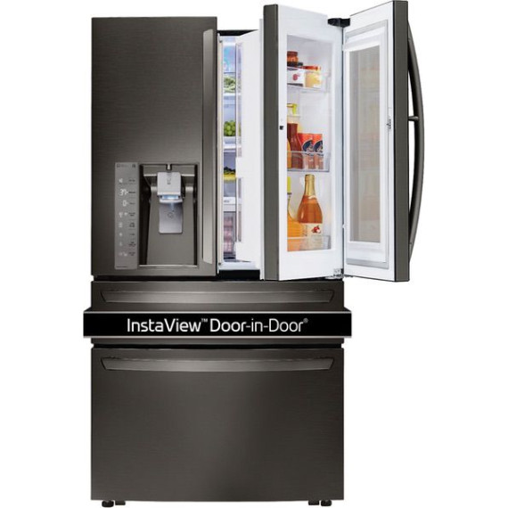 LG - 29.7 Cu. Ft. 4-Door French InstaView Door-in-Door Smart Wi-Fi Enabled Refrigerator - PrintProof Black Stainless Steel