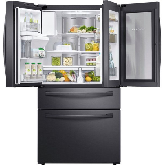 Samsung - 22.4 cu. ft. 4-Door French Door Counter Depth Refrigerator with Food Showcase - Fingerprint Resistant Black Stainless Steel