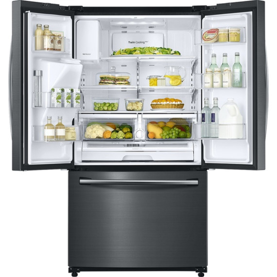 Samsung - 24.6 Cu. Ft. French Door Refrigerator - Fingerprint Resistant Black Stainless Steel