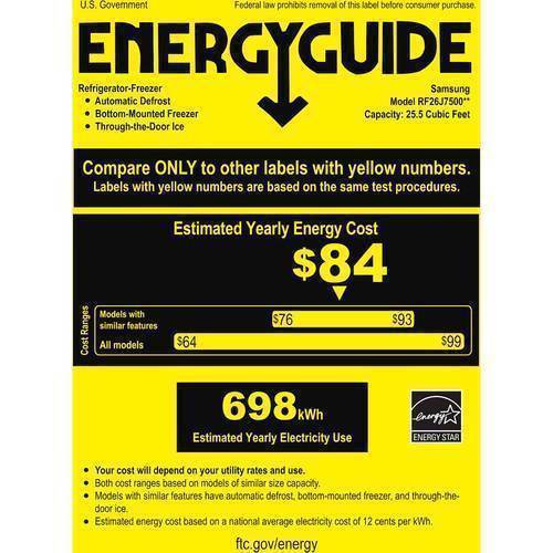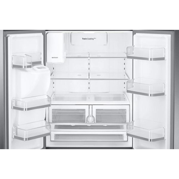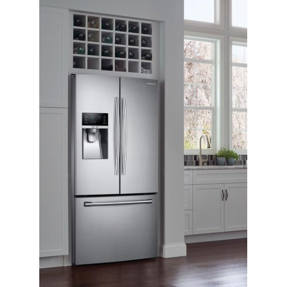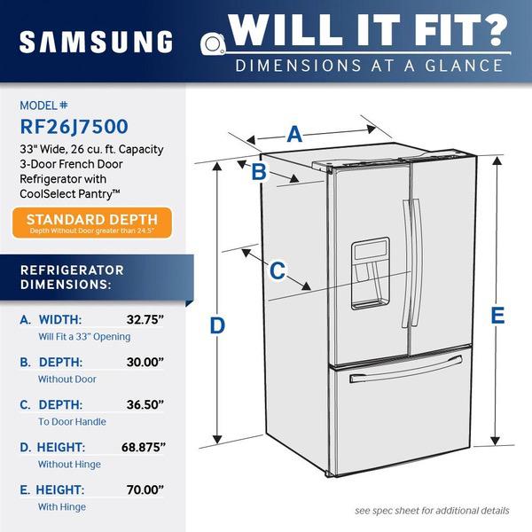 This Samsung 26 cu. ft. French door refrigerator stores up to 26 bags of groceries in a sleek 33"-wide model.
