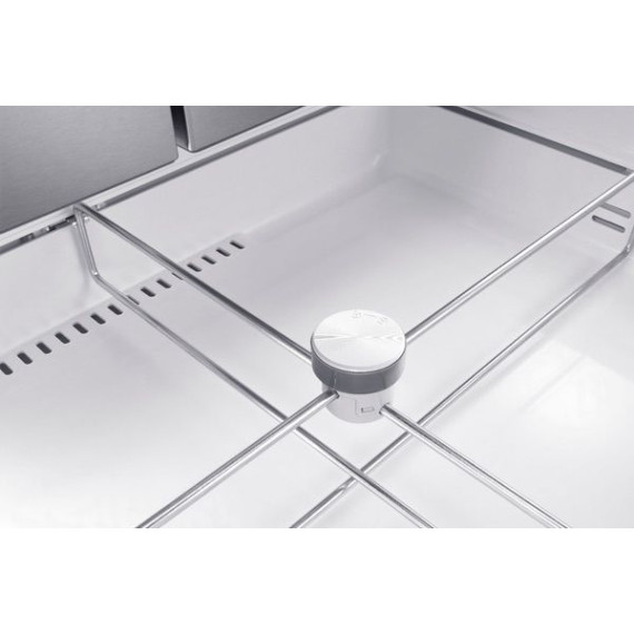 A refrigerator that is beautifully designed, with an modern dispenser, polished door, and sleek handles. The Food Showcase Door provides quick access to on-the-go items.