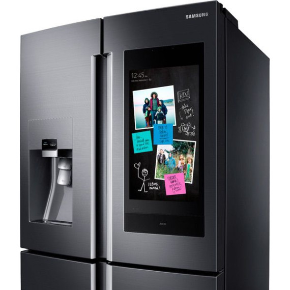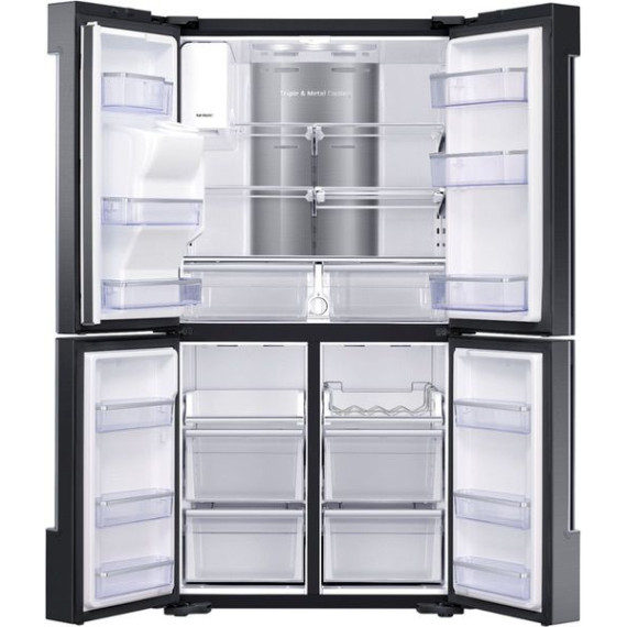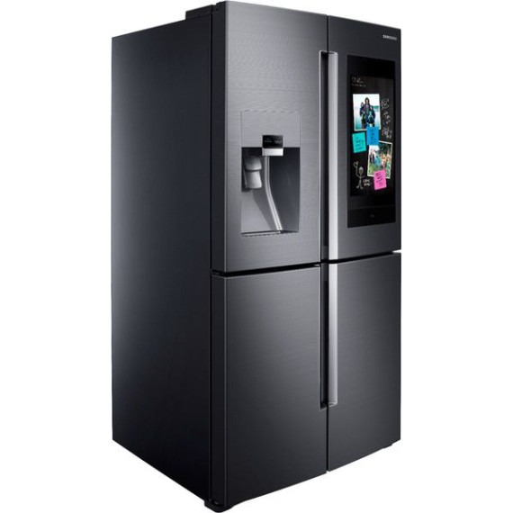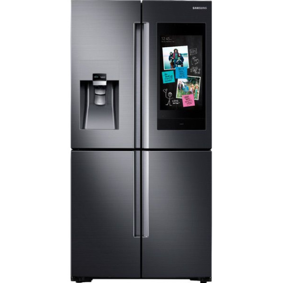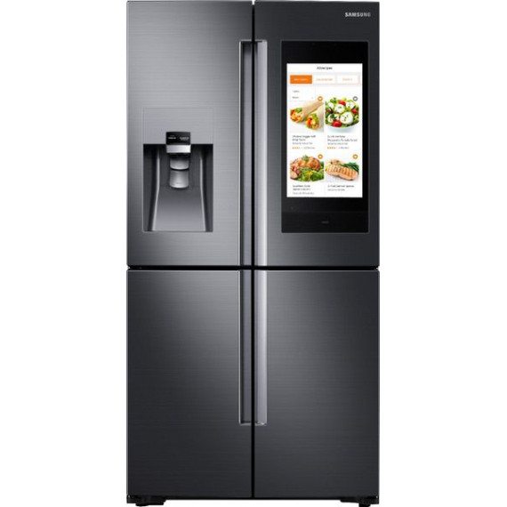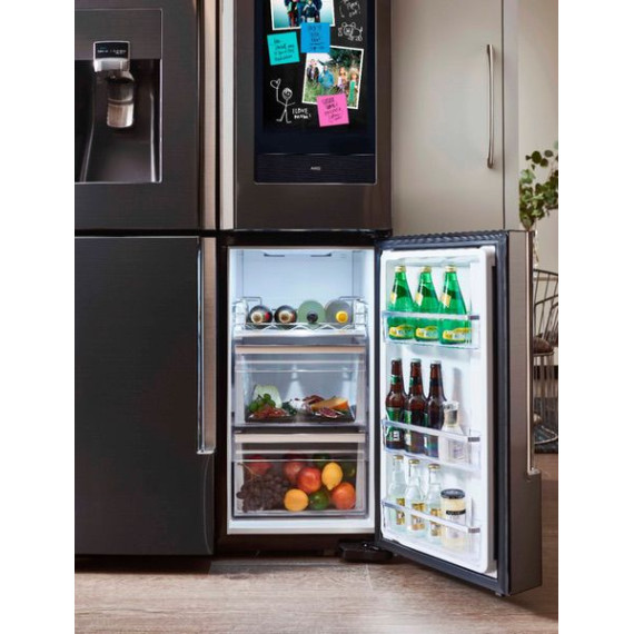Samsung - Family Hub 22 Cu. Ft. 4-Door Flex French Door Counter-Depth Refrigerator - Fingerprint Resistant Black Stainless Steel