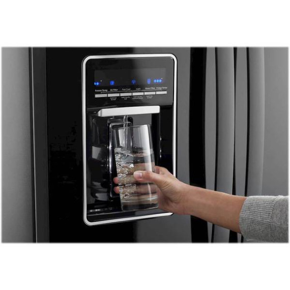 Preserve food quality and flavor with this Whirlpool 30-inch French door refrigerator. Its external water dispenser gives you access to a cold drink anytime, and the selectable humidity levels in the crispers let you choose ideal conditions for specific produce items. Alter storage space to fit your needs with the adjustable gallon door bins in this Whirlpool 30-inch French door refrigerator.