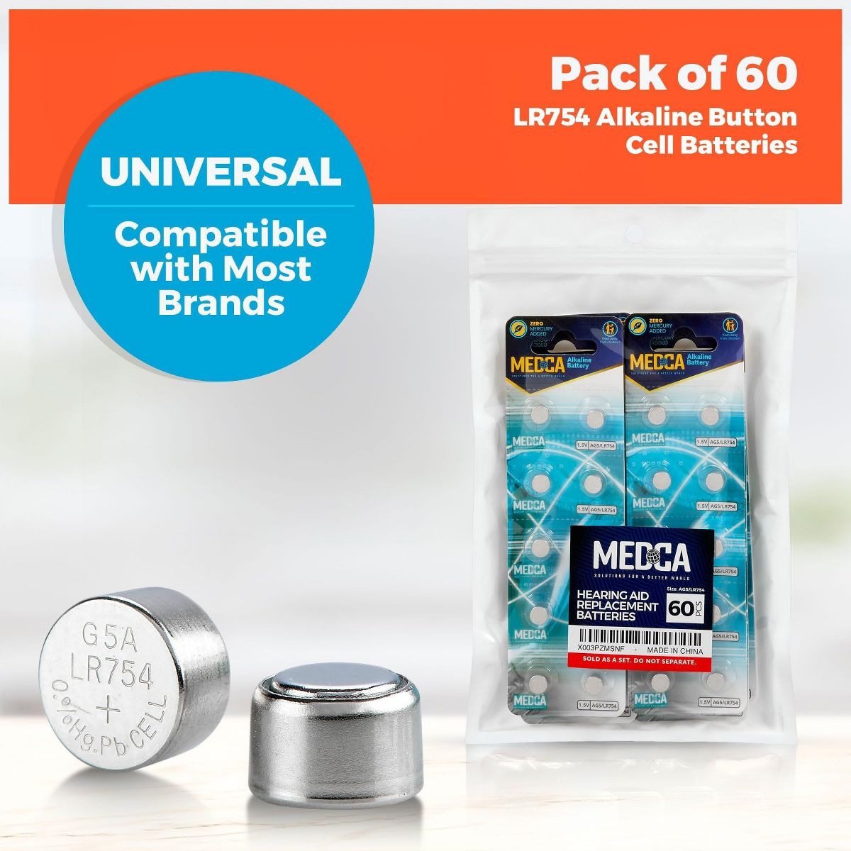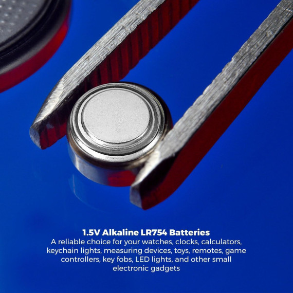 MEDca AG5 LR754 Alkaline Button Cell Batteries are perfect for watches, clocks, calculators, pen lights, measuring devices, toys, remotes, game controllers, key fobs, LED lights, and other small electronic gadgets. This pack of 30 provides a reliable backup supply for your household devices. Compatible with SR48, SG5, LR48, 193, 309, 393, LR754, SR754, 1136SO, 1137SO, 393A, V393, D393, GP393, L754, SR754W, D309, LR750, G5A, and SB-B4, these 1.5-volt batteries deliver 60mAh of strong, long-lasting power. Made of stainless steel, they are high-performance, mercury, lead, and leak-free, with extended shelf life for dependable energy in all your small electronics.
