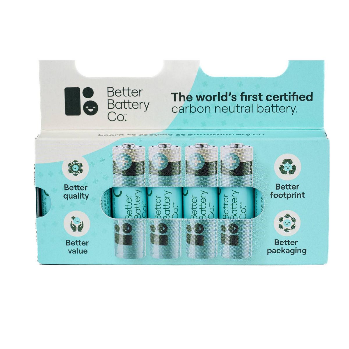 Better Battery Co. AA8 Pack High Performance Certified Carbon Neutral Alkaline Batteries: Single-Use, Household, Output Voltage 1.5V
