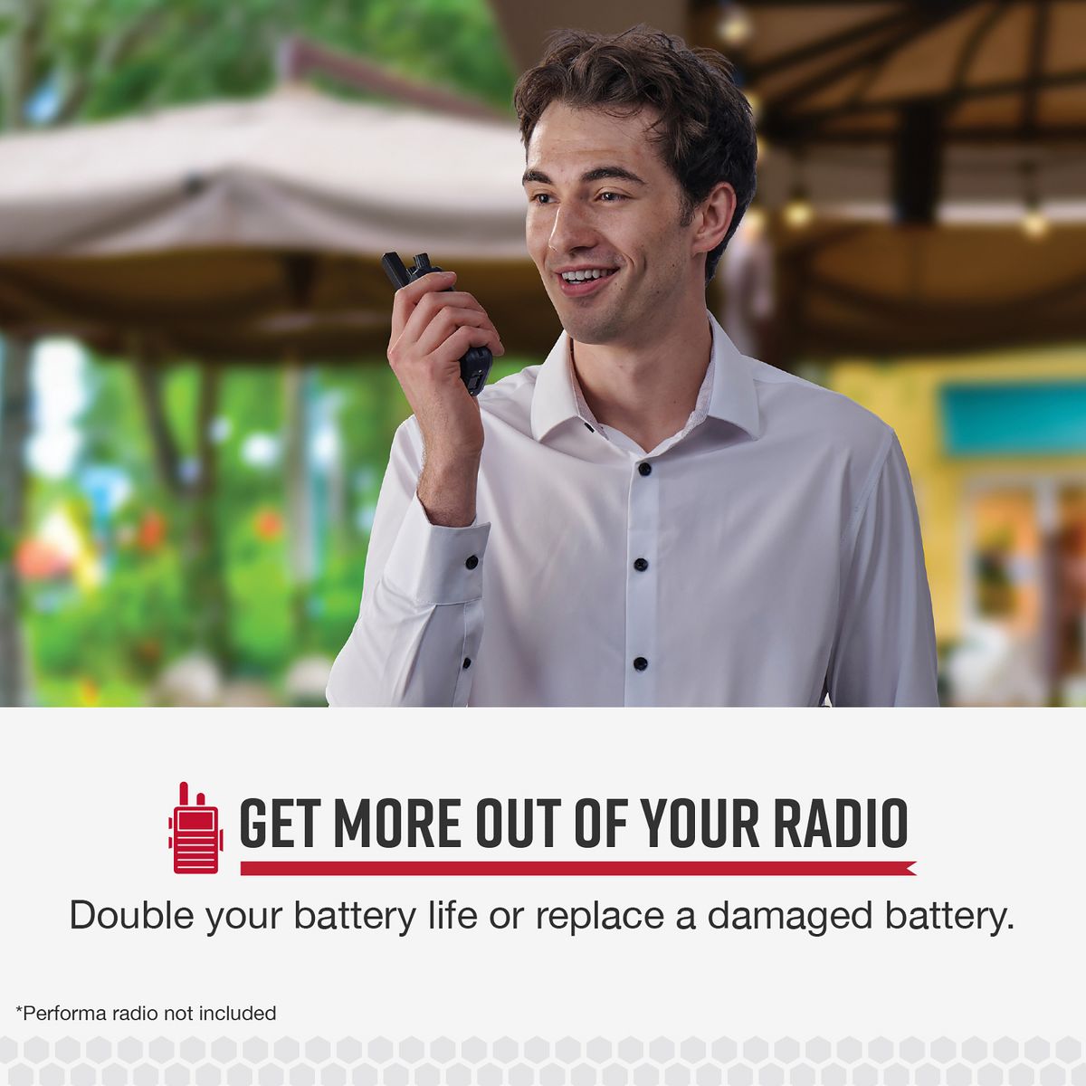 Is your company using Cobra® Performa 2-way handheld business radios? Use this Cobra® Li-Ion Battery as either a replacement or a backup rechargeable battery for your Performa 400 or Performa 450 handheld 2-way radio. It easily charges in either a Performa charging dock or a Performa radio. It is a durable, low-profile, high-capacity battery suitable for any work environment.