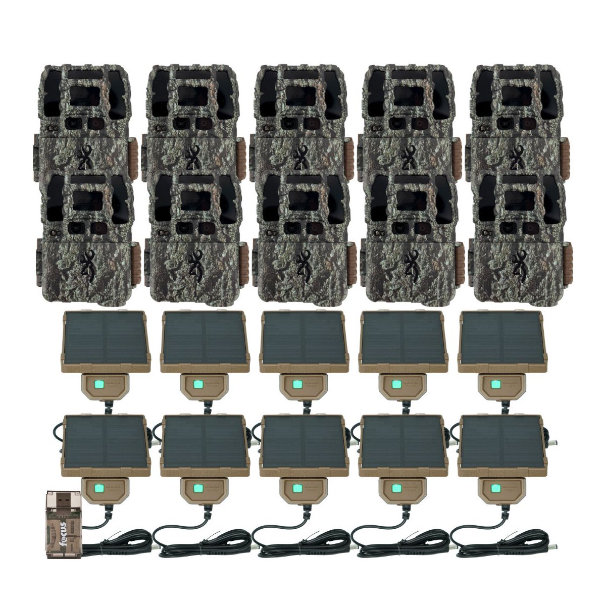 Browning Trail Cameras Dark Ops Pro DCL Nano with Dual Camera Lens Technology and 4K Video QualityThe updated Browning Trail Cameras Dark Ops Pro DCL Nano has a new, more compact housing and the most robust feature set in the Dark Ops camera series. These cameras feature a high-performance Invisible Infrared Illumination System to increase picture quality and range at night like never before, and wildlife or trespassers on your property cannot detect the camera while capturing images and videos. The Dark Ops Pro DCL Nano also features ‘Dual Camera Lens Technology’. This feature incorporates a custom-tuned daytime camera lens to produce razor-sharp daytime images, while the dedicated night camera lens takes incredibly clear nighttime photos. This camera packs all the performance you expect with 26 MP picture quality, 4K video with sound, lightning-fast 0.15-second trigger speeds, and superior battery life. Additional features include SD Card Management options and Smart IR video to keep recording the game during the daytime, as long as it’s in motion. The Dark Ops Pro DCL Nano is compatible with up to 512GB SD cards and delivers the best battery life on the market.FeaturesThe Browning Trail Camera Dark Ops Pro DCLN is equipped with a 100-foot flash range and an adjustable flash range (power save, long range). It features a 0.15-second trigger speed and a 0.35-second picture recovery time. The Illuma-Smart Technology automatically adjusts the IR flash for perfect night photos. It includes an all-steel adjustable tree mounting bracket and an SD card management feature. The camera has a long battery life powered by 6 AA batteries (not included) and supports up to 8 multi-shot images and 8 rapid-fire images. It also offers smart IR video, a programmable picture delay (1 second to 60 minutes), and a picture info bar displaying time, date, temperature, moon phase, barometric pressure, and camera ID. Additionally, it has a 12-volt external power jack, supports up to a 512GB SDXC memory card (not included), and includes a 1/4-inch-20 tripod socket. The camera features a TimeLapse Plus mode with IR-triggered images and is compatible with Browning Buck Watch TimeLapse viewer software. The camera is equipped with a 1.5-inch color viewing screen and a 54-degree viewing angle.Browning Trail Cameras Universal Solar Camera Power Pack with Rechargeable Battery and Charge MeterKeep your trail camera fueled and ready with the Browning Trail Cameras Universal Solar Camera Power Pack, designed to provide dependable, renewable energy in remote, rugged environments. With a built-in rechargeable Li-Ion battery, this solar pack delivers steady, high-capacity power, ensuring your camera captures every moment without interruption. Perfect for both standard SD cards and high-demand cellular trail cameras, this versatile power source adapts to a variety of models, making it an essential companion for extended field use. The pack’s high-charge solar cell charges rapidly, even in densely wooded locations, optimizing your setup’s efficiency without the hassle of frequent battery changes. With an integrated charge meter, you can easily monitor power levels in real-time and know exactly how much charge remains for your next adventure. Its compact and durable design includes a threaded mounting socket and a tree strap, allowing you to secure it easily and confidently wherever you need it.All-In-One High Speed Card ReaderThe All-In-One High-Speed USB 2.0 Card Reader lets you transfer data to and fro with ease. The high-speed memory card reader is compatible with both Mac and PC systems and offers a transfer rate of 480 Mbps. It supports a wide range of media cards, including SD, SDHC, microSD, MMC, TF, M2, and PRO Duo cards. This USB card reader is made with a plastic shell that is exceptionally durable..