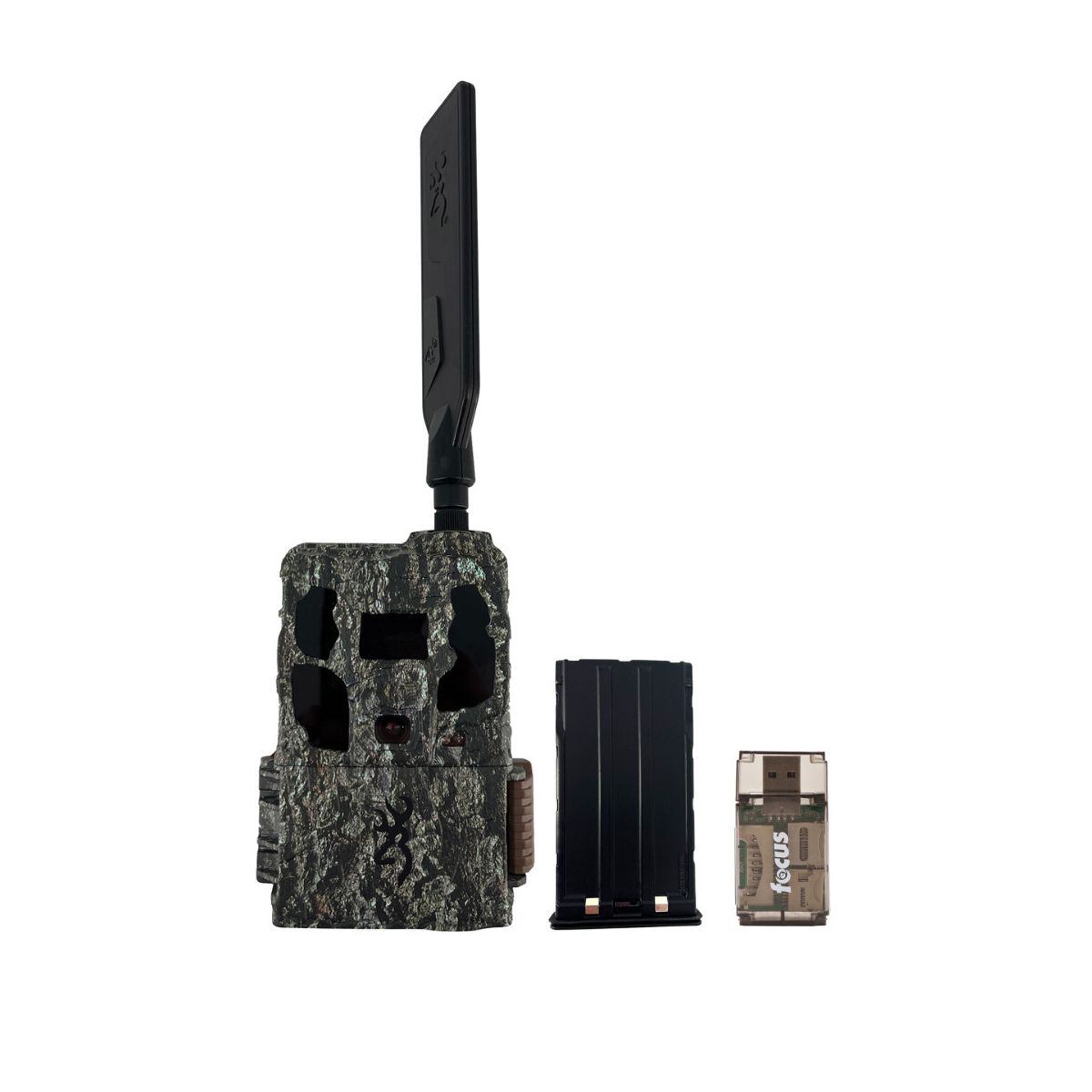 Browning Trail Camera Defender Wireless Pro Scout Max HD AI 46MPTake your wildlife tracking to the next level with the 2025 Defender Pro Scout Max HD AI from Browning Trail Cameras. Engineered for precision, this powerhouse camera uses enhanced AI image recognition software to automatically tag species in your photos, making identification effortless and accessible through the Strike Force Wireless app. This groundbreaking feature, coupled with ALL HD ALL THE TIME image uploads, ensures you receive crisp, high-quality visuals every time, whether for live scouting or comprehensive data collection.Unmatched Features and ReliabilityEquipped with an ultra-high-gain antenna and pre-installed AT&T and Verizon SIM cards, the Defender Pro Scout Max HD AI intelligently selects the best available network, so you're always connected. With 46MP images, 1080p HD video, and ON DEMAND photo and video capability, you’re set to capture every detail of the wilderness.The invisible 100-foot IR night illumination and adjustable IR flash settings (Power Save, Fast Motion, Long Range) provide unbeatable nighttime coverage, while Illuma-Smart technology automatically optimizes flash for clear, vibrant images in low light. Plus, with GPS-tagged images and a 0.25-second trigger speed, no activity goes undocumented, whether it’s deer, elk, or other game.High-Capacity, Long-Lasting PowerEnjoy up to a year of battery life on 8 AA batteries (not included), along with an external 12-volt power jack for extended field time. Compatible with up to a 512GB SDXC memory card, you’ll have more than enough storage to capture every moment.Ultimate Control on the GoManage your camera remotely via the Strike Force Wireless app, scheduling or instantly uploading HD images and videos. Enjoy month-to-month data plans with no long-term contracts, meaning you only pay for the months you need. With email and text notifications support, the Defender Pro Scout Max HD AI keeps you connected to the action anytime, anywhere.Browning Trail Cameras Rechargeable Li-Ion Battery Power Pack with USB-C CableUpgrade to the Browning Trail Cameras Rechargeable Li-Ion Battery Power Pack and power your next adventure. Say goodbye to the constant expense and hassle of AA batteries with the battery pack, engineered to keep your trail camera powered longer and more efficiently. Delivering up to 30 percent more battery life, this pack ensures your cameras capture every critical moment without interruption, whether monitoring game or keeping an eye on your property. Designed for quick, hassle-free recharging with an included USB-C cable, this battery pack can be easily swapped out in the field, giving you reliable, consistent power wherever you go. Tailored to fit compatible Browning models, including BCT-PSMX, BTC-PSMXHD, BTC-PSMHD, BTC-PSMHD-AI, BTC-PSMHD40, and all BTC-PSMHDS series cameras, they offer an effortless solution for maintaining peak camera performance with minimal downtime. Keep your trail camera ready to capture every second with a reliable, eco-friendly power source that's made for the outdoors.All-In-One High Speed Card ReaderTransfer data to and from your PC with this All-In-One High-Speed USB 2.0 Card Reader by Focus Camera. The high-speed memory card reader provides a transfer rate of 480 Mbps and supports most media cards, including SD, SDHC, micro SD, MMC, TF, M2, and PRO Duo cards. Compatible with both Mac and PC systems, this USB card reader is made with a plastic shell that is exceptionally durable..