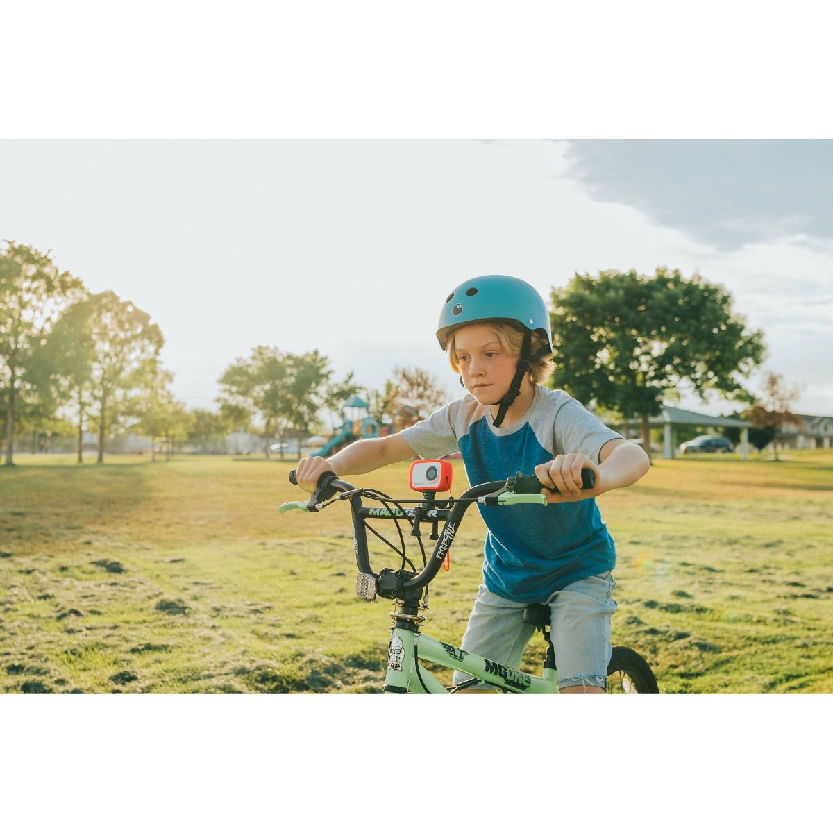I love this compact camera. It's easy to use and does great work on recording and pictures. It has a magnetic base helmet and bicycle mount. It's shockproof and waterproof and dust resistant. It has a wrist strap and has a playback mode. Very convenient for travel and family gatherings. I'm really pleased with this one. The camera also has a microphone. Very nice
