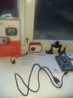 The Polaroid Sport Action Camera is a great little camera. It comes with a mount for a helmet and bicycle. It also has a charging cable and wrist strap. The camera can take photos or video and had a 2 inch screen for viewing and playback. It is also waterproof up to 3 feet and freeze proof. We took the camera ice fishing and it was freezing cold and the camera worked great. It's super easy to use and to transfer your photos and videos to a computer. You do need to buy a micro SD card if you don't have one on hand. I was really impressed at what this little camera could do.