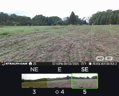 The all new Stealth Cam Revolver 36MP 360-Degree Cellular Trail Camera delivers the equivalent of six cameras worth of coverage in a single device capturing 4MP, 8MP, 16MP, and 36MP photos and 1080 HD video with audio via a revolutionary, 360-degree cellular model that covers six zones to deliver a complete panorama of its surroundings. This means users get a full 360 degrees of visibility, day and night, to ensure they never miss a thing even deer passing behind where the lens is positioned. Plus, thanks to its silent, pivoting motor, you can get more than just one photo from a single vantage when a zone is triggered. The camera responds quickly to deliver high-quality images and videos in real time, making it ideal for use on food plots. Choose from three photo operation settings, including: single-zone capture, 180-zone capture and 360-zone capture. Four power LEDs boast a whopping 80-foot detection range which, when paired with the 0.4-second trigger speed, burst mode and timelapse capabilities, provide reliable updates in real time, 24 x 7. Thanks to the integrated GPS, the camera shares its coordinates with you. Powered by a 16pc dual cartridge battery, it features a 1/4-inch threaded mount, 12V DC auxiliary jack and optional t-post mounting bracket (included). Includes Command Pro app compatibility.Never Miss a Shot with Incredible 360-Degree ViewsCapture every angle with the Revolver’s 360-degree mode, designed to provide comprehensive visibility in food plots and large open areas. This feature ensures you never miss a moment, wrapping the entire scene into one shot for unparalleled observation and monitoring..
