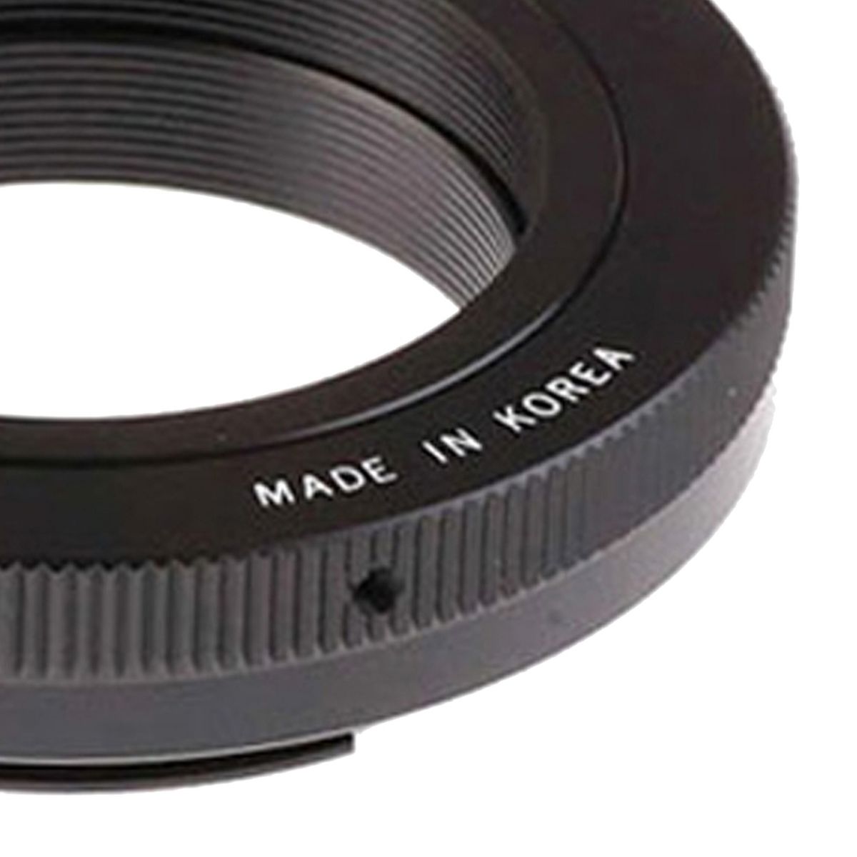 T-mount adapter is compatible with all T-mount lenses including the Rokinon 500mm Mirror Lens, 500mm telephoto lens, 800mm mirror lens, and 650-1300mm zoom lens. Back end attaches to camera body. Lens attaches to front of T-mount. Get the best results and reliability for your photography equipment. The strong and sturdy material is sure to provide long lasting durable mounting for your photography camera.