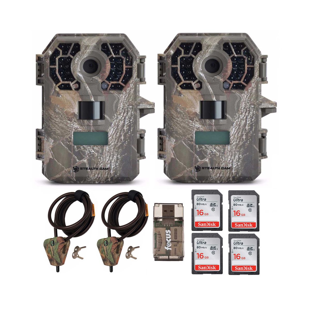 Stealth Cam G42NG No-Glo Trail Camera (2-Pack) Bundle with Cables and SD Cards