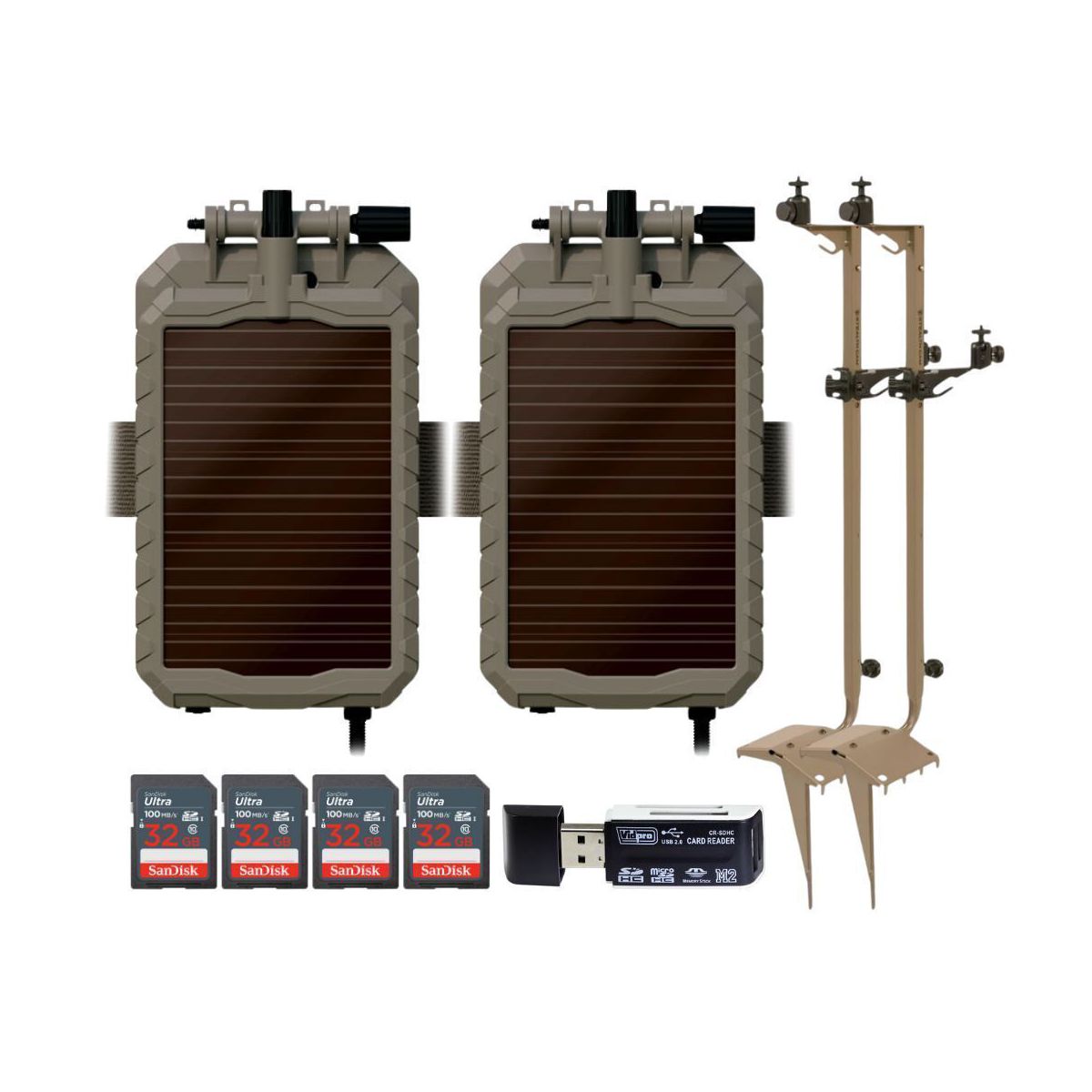Stealth Cam Mounting Post for Camera& Solar Pak with 12V Solar Battery Pack 32GB Memory Cards and Card Reader (2 Pack)