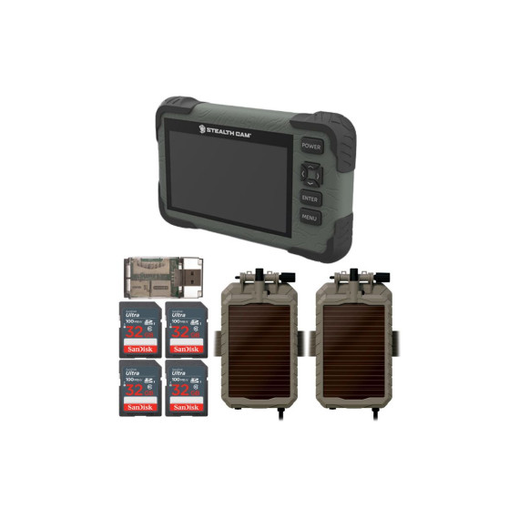 Stealth Cam Revolver 40MP Pro 360-Degree Cellular Trail Camera with 1/4-Inch Threaded MountStealth Cam Sol-Pak 5000mAh Lithium-Ion Solar Battery for 12V DC Jack with LED-IndicatorSanDisk 32GB Ultra SDHC UHS-I Memory Card (100MB/s)The SanDisk 32GB Ultra SDHC UHS-I Memory Card allows you to capture better pictures and Full HD videos with your compact to mid-range point and shoot cameras. Store tons of photos and videos, with speeds up to 100MB/s to quickly transfer it all to your computer.Capture the MomentThis SanDisk Ultra SD card delivers exceptional photo and video shooting performance to let you capture your memories when they happen.Picture and VideoCapture amazing quality pictures and Full HD video with your compact point-and-shoot camera.Keep ShootingShoot tons of photos and hours of Full HD video (1080p) without changing the card.DurableThis SanDisk Ultra SD card is durable and tested to protect your memories from life’s mishaps—waterproof, shockproof, x-ray proof, and temperature-proof.Focus All-In-One High Speed Card ReaderTransfer data to and from your PC with this All-In-One High-Speed USB 2.0 Card Reader by Focus Camera. The high-speed memory card reader provides a transfer rate of 480 Mbps and supports most media cards, including SD, SDHC, micro SD, MMC, TF, M2, and PRO Duo cards. Compatible with both Mac and PC systems, this USB card reader is made with a plastic shell that is exceptionally durable..