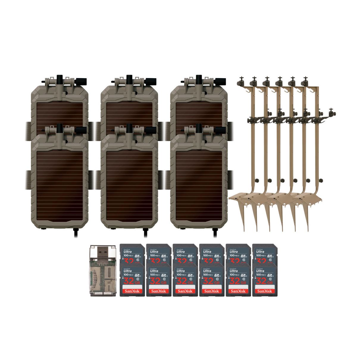 Stealth Cam Mounting Post for Camera& Solar Pak with Solar Battery Pack 32GB Memory Cards and Card Reader (6 Pack)