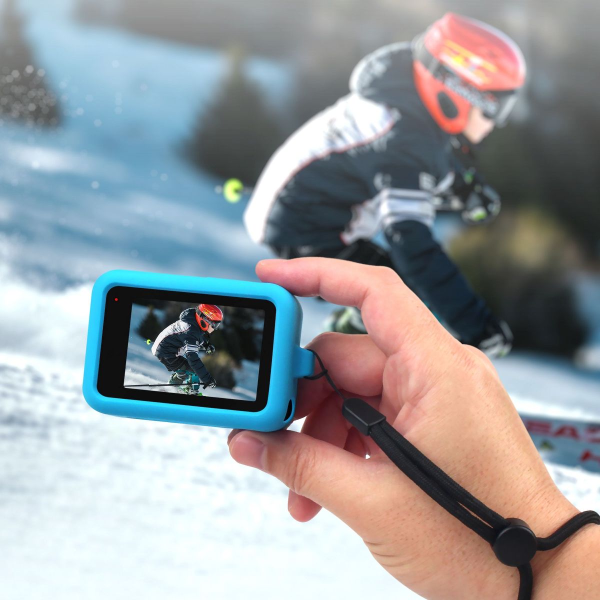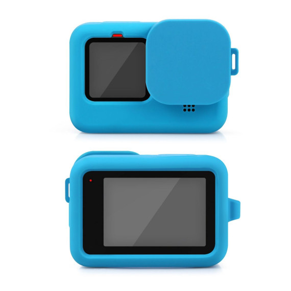 Insten 2 Pack of Silicone Protective Case Compatible with GoPro Hero 9 10 with Lanyard and Lens Cap, Soft Rubber Case, Black & Blue