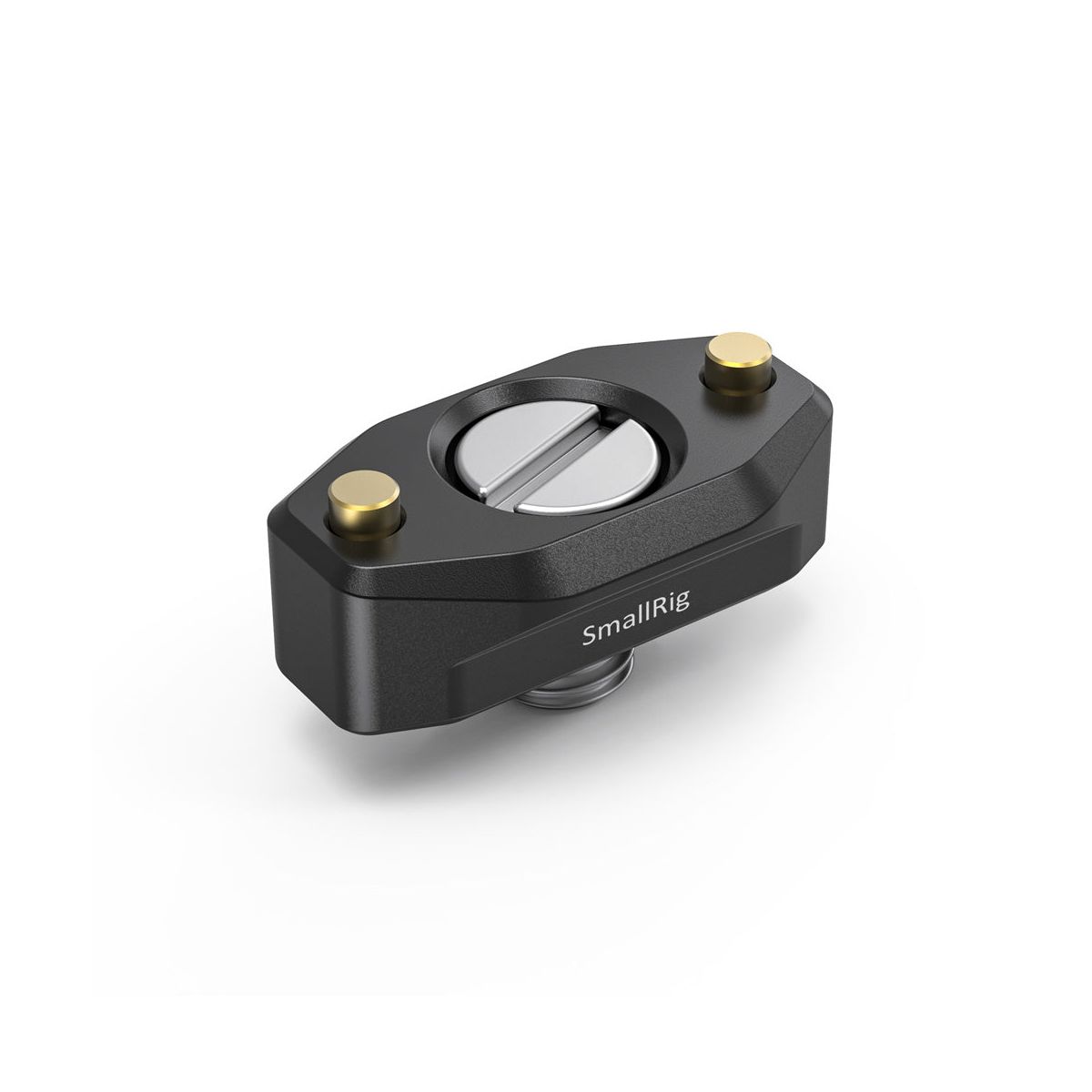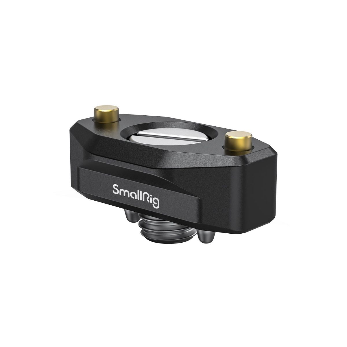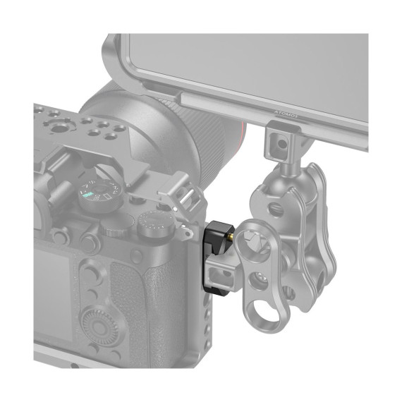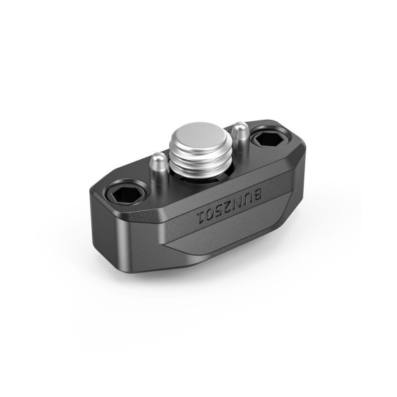 Attaches to ARRI-standard accessory mounts using a 3/8”-16 screw and two locating pins. It features a NATO rail on the top, compatible with NATO accessories.