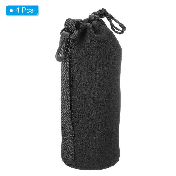 Unique Bargains Neoprene Waterproof Shockproof Camera Drawstring Lens Bag Black 4 Pcs 3.1" ID x 3.9" H