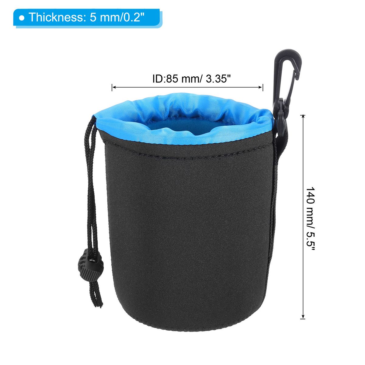 The Neoprene Lens Pouch Bag is designed to provide waterproof, shockproof, and wear-resistant protection for your camera lens. It is suitable for most lenses from various brands and can also hold water or coffee cups. The pouch offers heat preservation and anti-scald features. Equipped with a strap and hook, it allows for versatile carrying options. The drawstring design secures the lens, while the 5mm thick neoprene fleece protects against adverse weather, collisions, and scratches. Ensure compatibility by checking the size before purchasing.