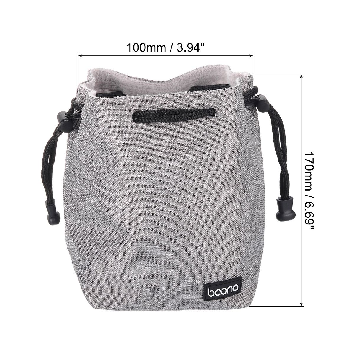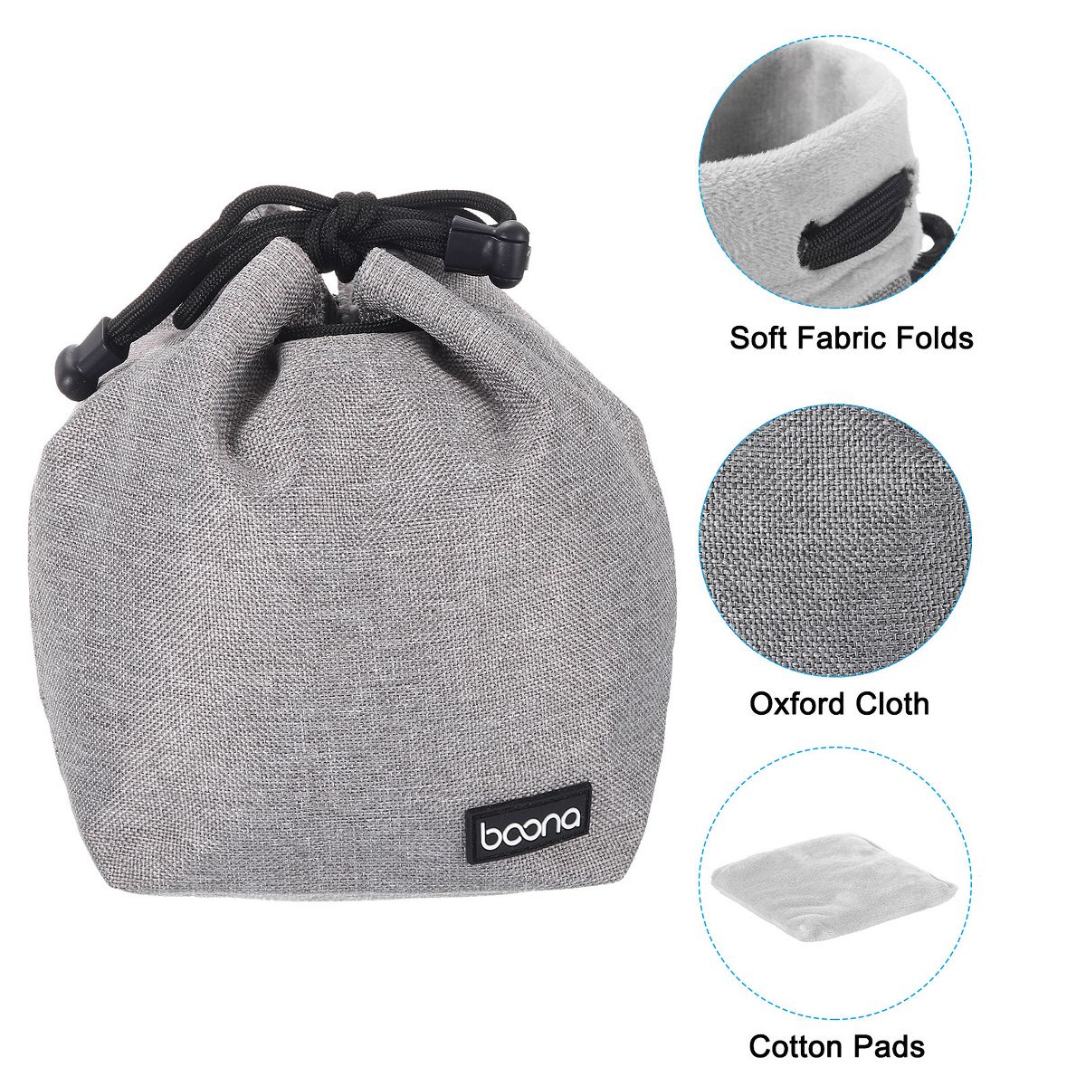 Unique Bargains Waterproof Shockproof Wear-resistant Lens Pouch Bag with Cotton Pad Grey 3.94" x 3.94" x 6.69"