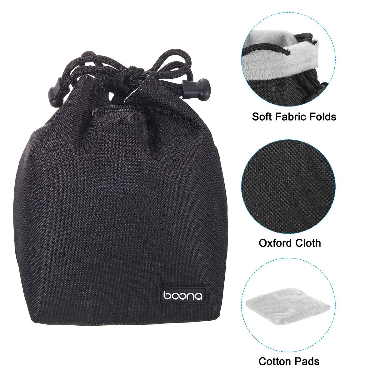 Unique Bargains Waterproof Shockproof Wear-resistant Lens Pouch Bag with Cotton Pad Grey 3.94" x 3.94" x 6.69"