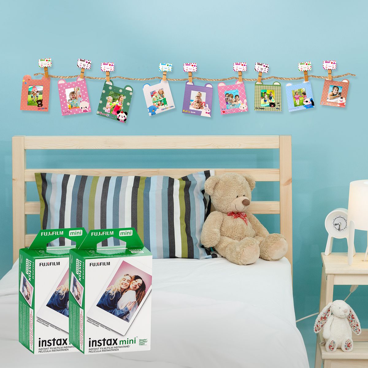 Upgrade your Fujifilm camera experience with this premium accessory kit. This kit includes stickers, frames, and photo props to enhance your photo session. Additionally, this kit also includes 20 sheets of film to eternalize 20 special moments! Store the pics in the white photo album or choose to display them using the photo clip hangers.