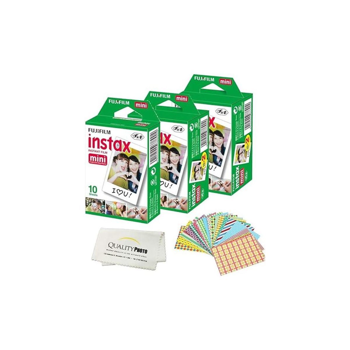Fujifilm INSTAX Mini Instant Film 20 Sheets for Fujifilm Instax Mini 8 9 11 12 Cameras + Frame Stickers and Microfiber Cloth Accessories White