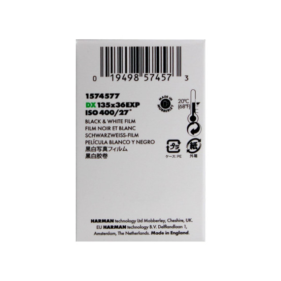 Ilford's HP5 Plus Black and White Negative Film is a traditional and versatile panchromatic film designed for general use in a wide variety of shooting conditions. Exhibiting notably wide exposure latitude, this film responds well to use in mixed and difficult lighting and provides medium contrast for greater overall control. It has a nominal sensitivity of ISO 400/27° when developed in standard black and white chemistry, and responds well to push processing. HP5 Plus is a flexible film type that is ideally suited for use in general photographic applications in an array of different lighting conditions.