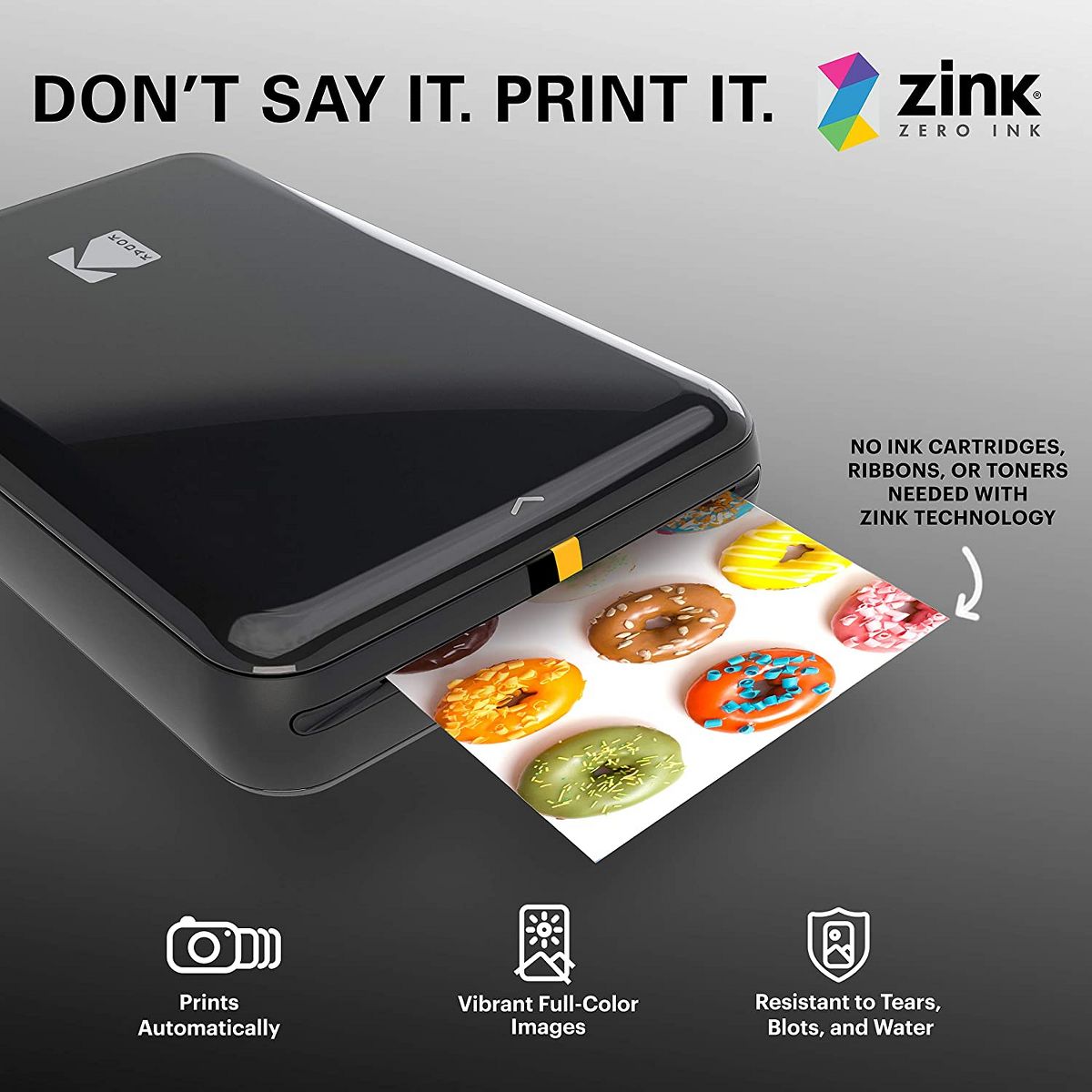 Every image boasts remarkable color integrity that is perfect for printing smartphone shots or social media photos. Zink zero ink photo paper is the exciting new way to print vibrantly colorful photos instantly, without the need for ink or toners. Easy to load, with no cleanup needed, sticky-back Zink photo prints are water-resistant, tear-resistant, smudge-proof, and dry to the touch. Zink paper also costs less than any other instant print brand, so you get more prints per penny.